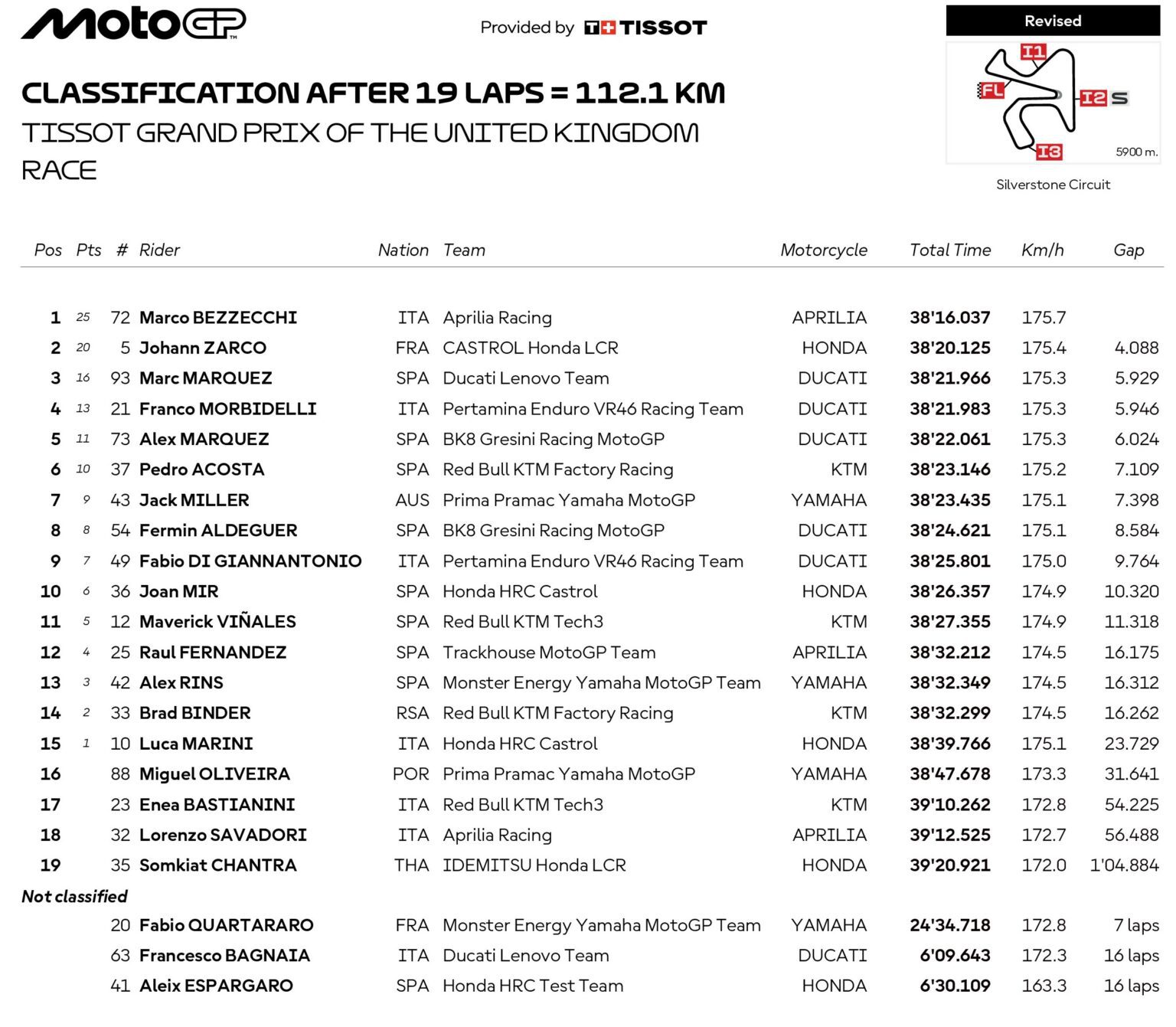 Clasificación del GP de España