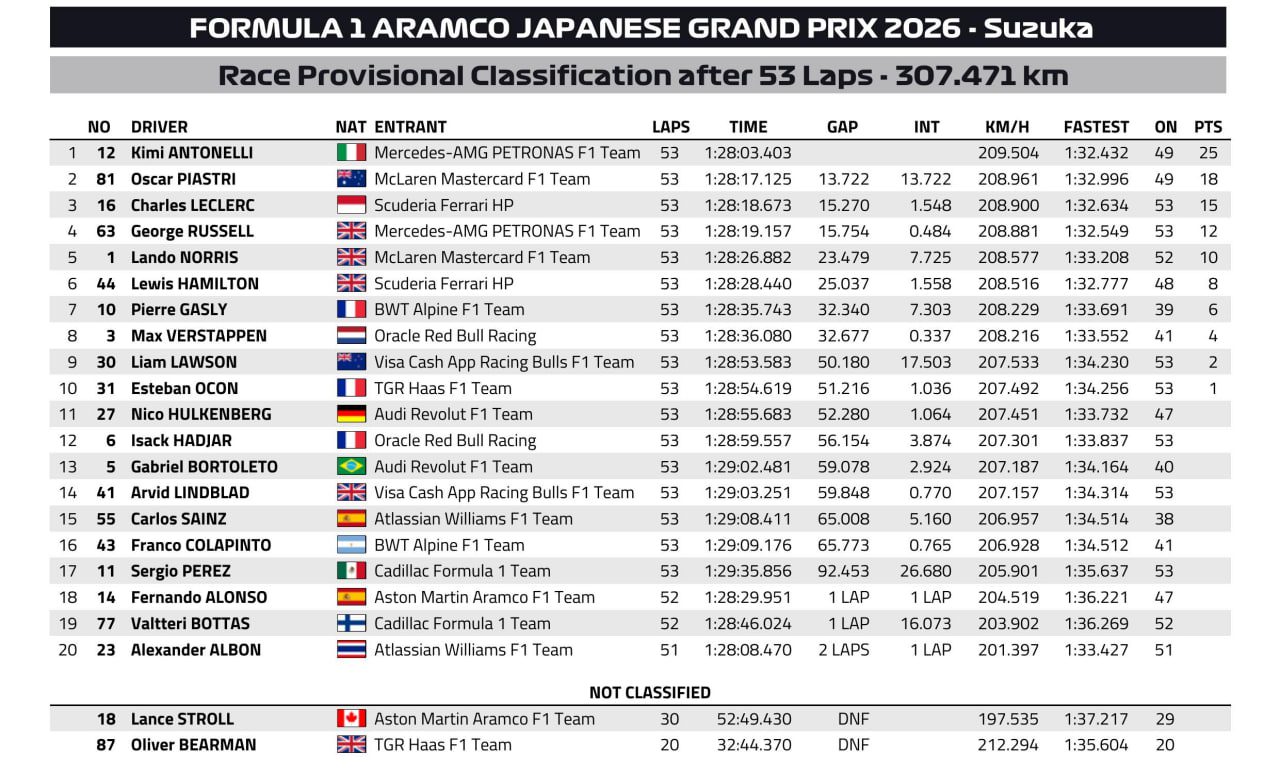 Resultados del GP de Japón 2026