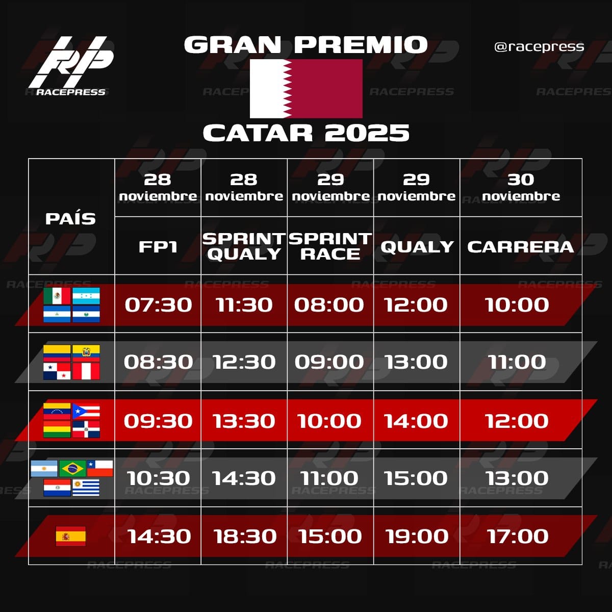 Horarios del GP de Qatar
