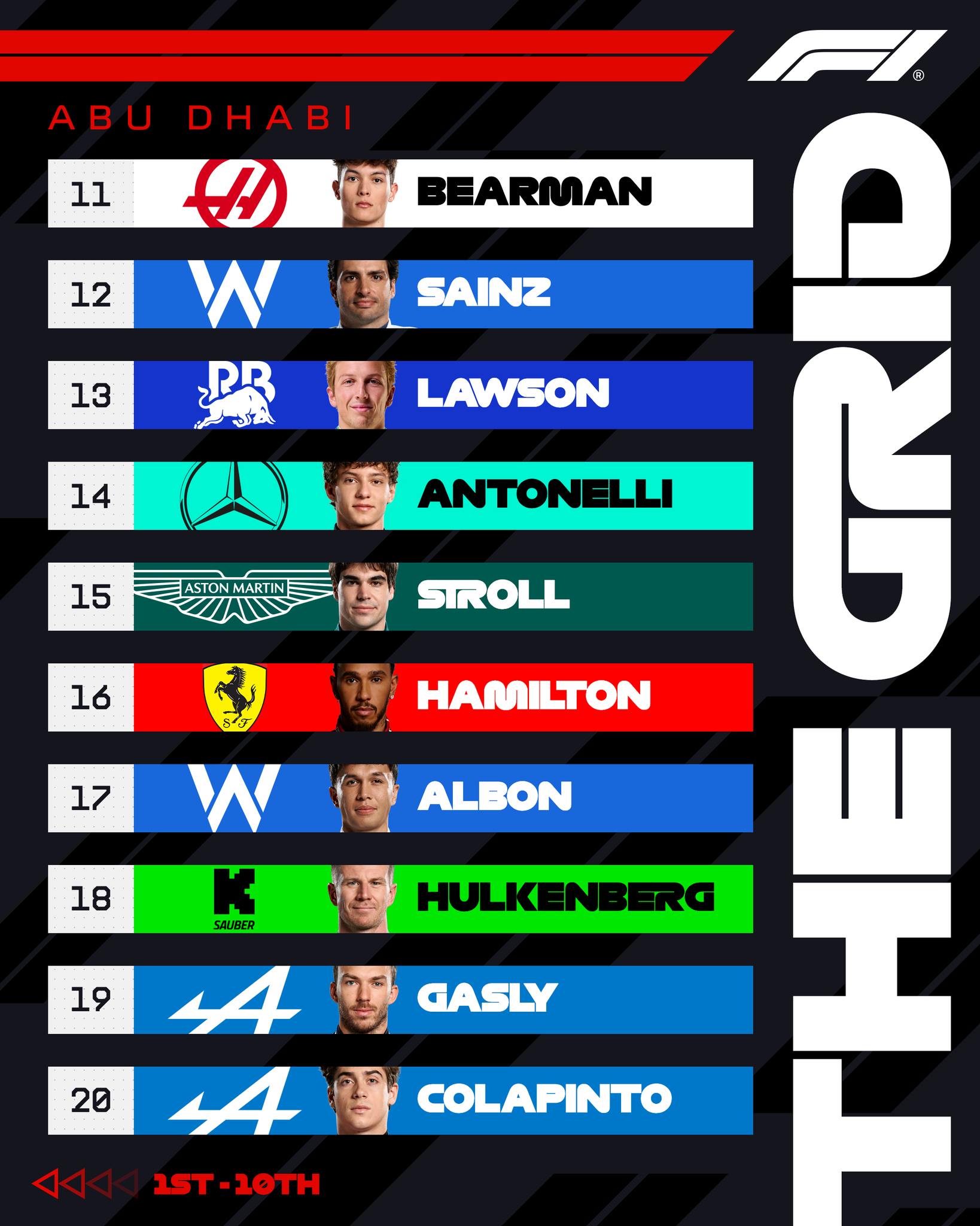 Por otro lado, Franco Colapinto cerró la parrilla en el puesto 20 con su Alpine. El joven argentino, que ha mostrado destellos de velocidad y valentía durante el año tras su salto desde Williams a la estructura francesa, no encontró el ritmo en Yas Marina. Alpine ha sufrido horrores con la configuración mecánica en los bordillos planos de Abu Dhabi; el coche es inestable y rígido. Colapinto pagó el precio de un monoplaza impredecible, quedando a una distancia considerable del corte de la Q2. Será una carrera de aprendizaje y supervivencia para él desde el fondo, buscando capitalizar cualquier coche de seguridad.