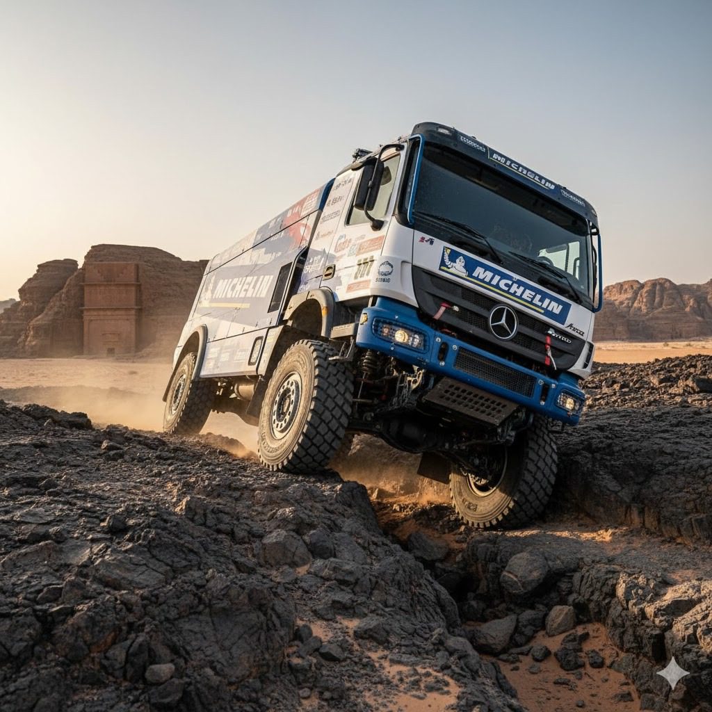 - Etapa 1 (4 de enero): AlUla – Al Henakiyah (410 km SS): Un terreno compuesto en un 60% por pistas de cañones y piedras volcánicas. El riesgo de pinchazos es del 85% para quienes no gestionen la presión de los neumáticos Michelin o BFGoodrich.